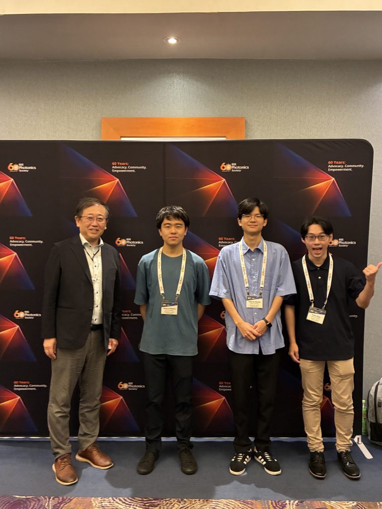 石澤・野邑研究室の修士2年 佐藤優成さん、修士1年 中野晶博さん・大久保樹人さんの3名が、11月9日〜13日にシンガポールで開催された IEEE Photonics Conference 2025(https://ieee-ipc.org/)にて口頭発表を行いました。